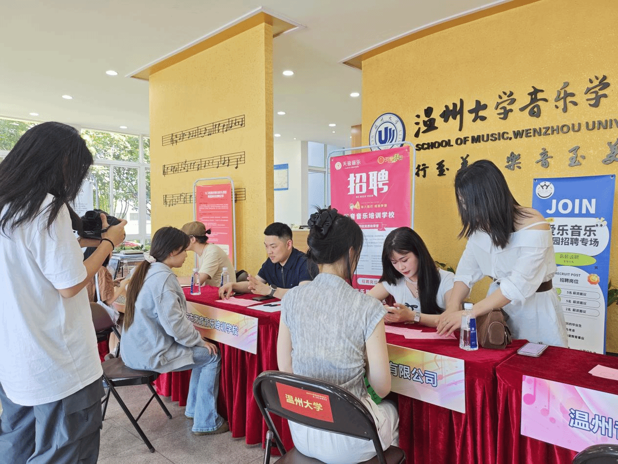 在招聘会现场,毕业生们手持精心准备的简历,积极与用人单位交流沟通。对于他们而言,这场招聘会不仅仅是一次求职机会,更是一场生动的职业生涯规划实践课。在与用人单位的洽谈过程中,毕业生们深入了解音乐市场的需求趋势、对毕业生专业素养要求等行业动态,能够更加明确自身定位,从而为未来的职业发展做出更为合理的规划。招聘会选在毕业生论文答辩当天,实现了“培养+就业”的无缝衔接,让学生们刚走出答辩场,走入面试厅。
