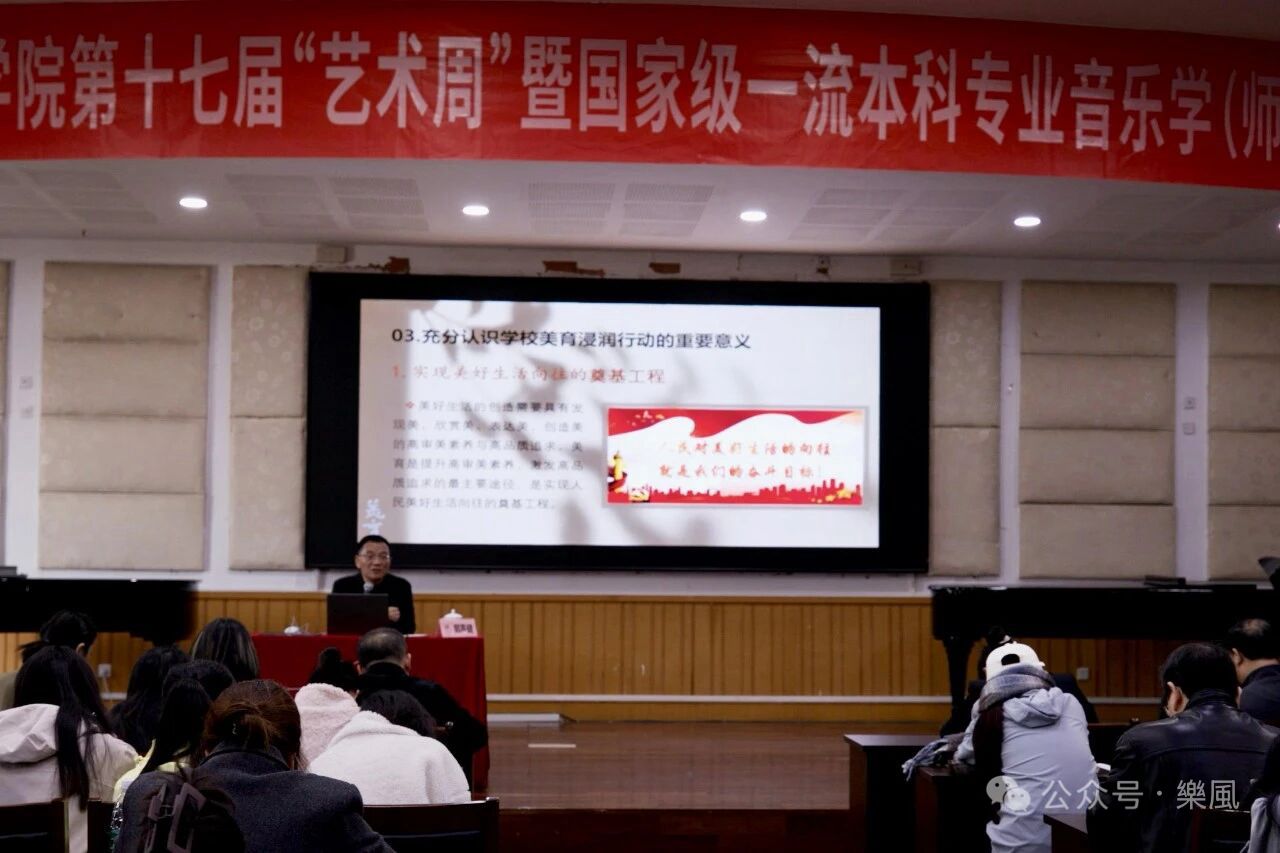 讲座尾声,张潇潇副院长用“暖意”与“感动”总结了聆听感受。她表示,深切体会到郭声健教授对美育事业的赤诚投入与深厚热爱,郭教授用脚步丈量美育的广度,用真心传递教育的温度,始终践行着美育工作者的初心使命,将爱的教育播撒到各个角落。这份坚守与热忱也让在场师生深刻领悟到,教育的核心在于用美好滋养心灵,用爱点亮成长之路。