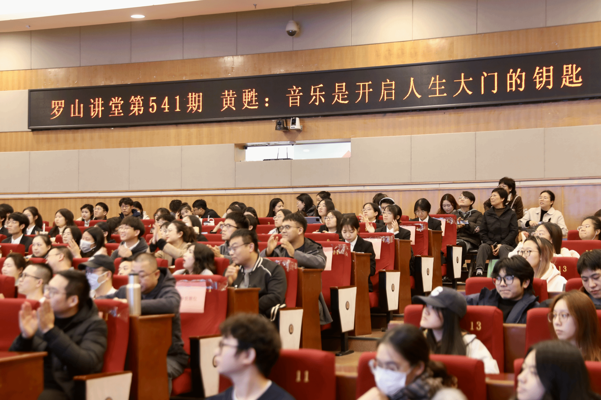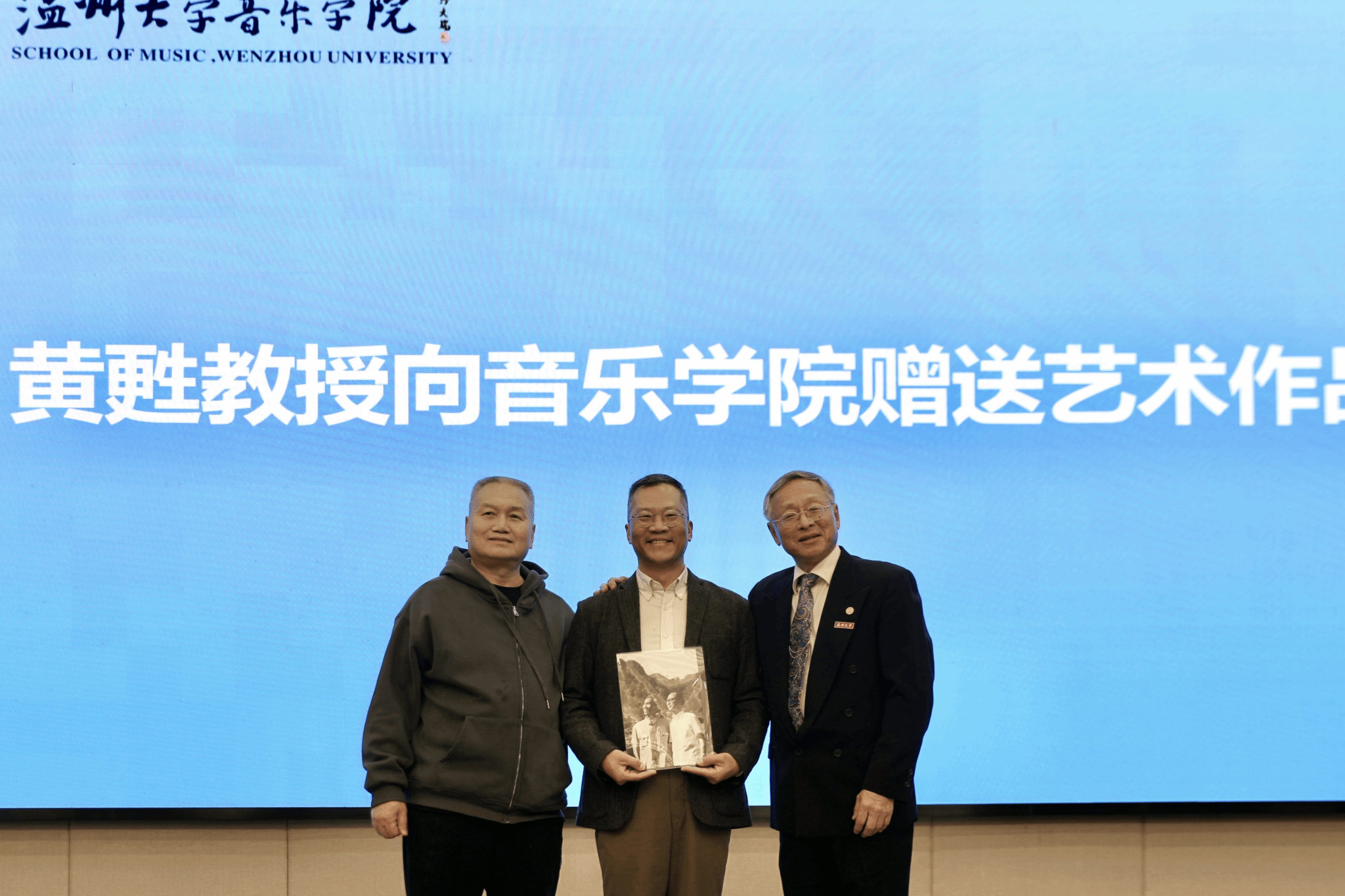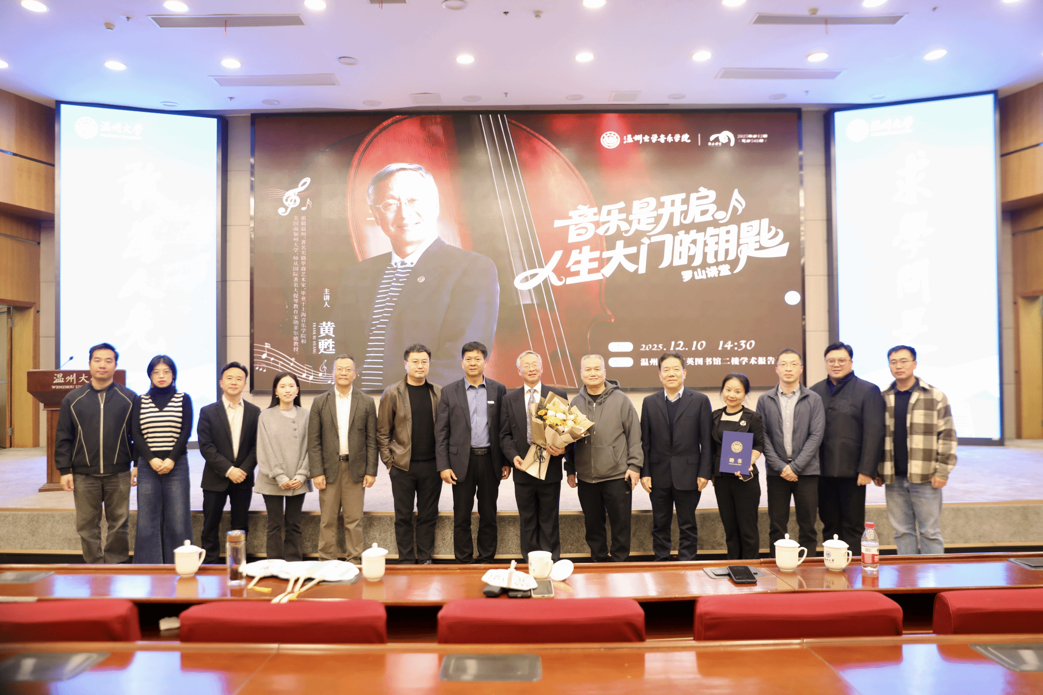 育英图书馆学术报告厅内座无虚席,罗山讲堂之《音乐是开启人生大门的钥匙》艺术分享会在此隆重举行。美籍华裔艺术家黄甦教授受邀回温开讲,为现场师生带来一场融合音乐、影像与人生智慧的学术盛宴。