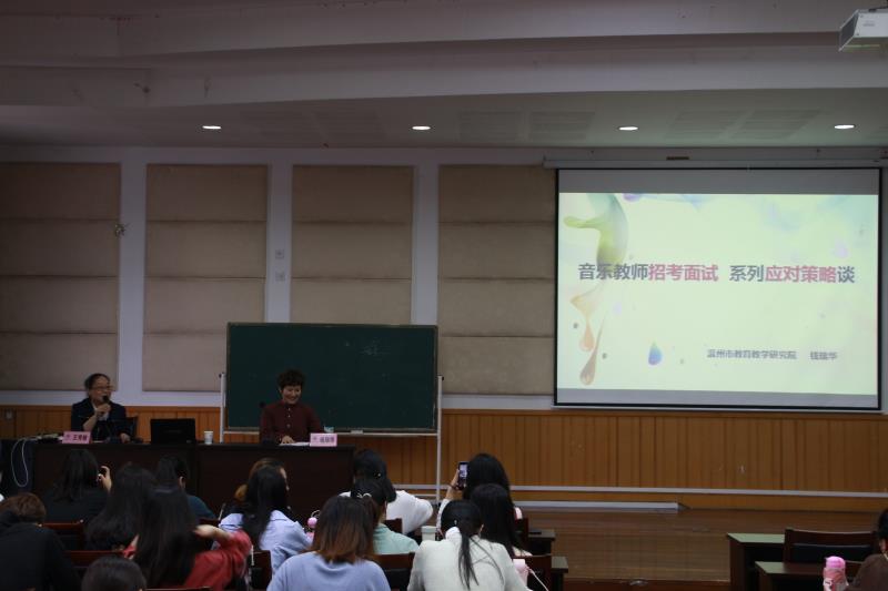 2018年4月13日在音乐楼报告厅201举行了“音乐教师招考面试,系列应对策略谈” 的讲座。讲座由声乐教研室王秀敏副教授主持。