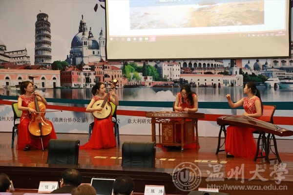 派研究生林汉霖、本科生王艺博、沈娴慧、杨日西、张婕、李玲晨参加了当天上午的文化周开幕式,并进行了交流演出。沈娴慧等五位本科生为意大利客人及参加开幕式的嘉宾们表演了民乐重奏《战马奔腾》与《黄土情》、研究生林汉霖演唱了意大利拿坡里民歌《O Sole Mio》(我的太阳)。时时彩