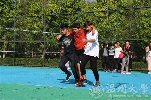 运动会项目包括四项,分别是三人四足、乒乓接力、投篮比赛和集体跳绳。本科生大一、大二和大三以及研究生全员积极参与,由于时间原因,四个项目交替进行。比赛还未开始,老师们和同学们都激情满满,在由赵院长抡起的大跳绳的上下起伏之中,跳动的不仅是师生们整齐划一的频率,更是师生们那颗颗欢乐的心。不久,比赛正式开始,集体跳绳如赛前一般激情四射,欢笑洋溢在每个人的脸上。三人四足项目主要考察队员之间的协调性和默契程度。很快,火一般的热情,燃烧了整个战场,同学师生之间相互鼓励,呐喊声阵阵,只为齐心协力共同迈向终点。乒乓接力考验队员的平衡力和速度,小小的球拍,连接的是团结和友爱,传递的是勇气和力量,承载的是奋斗和拼搏。赛程虽然不大,每位选手却都神经紧绷,目不转睛地盯住球拍,比赛整体精彩又刺激。投篮比赛也是令师生们啧啧称赞的一个项目,虽然许多同学尤其是女同学很少接触篮球,却个个也是踊跃参与。每进一个球,欢呼雀跃之声便回荡在运动场上。