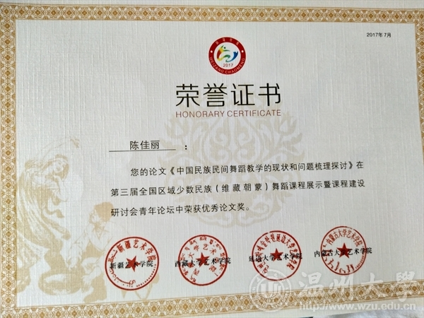 级研究生陈佳丽向大会提交的舞蹈学术论文《中国民族民间舞蹈教学的现状和问题梳理探讨》从百余篇论文中脱颖而出,在十几篇优秀获奖论文中占有一席之地。为时时彩 争得了荣誉。