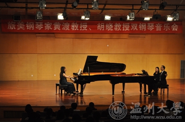 在北校天瑞音乐厅举行“旅美钢琴家黄渡教授、胡晓教授双钢琴音乐会”。本次演奏者旅美钢琴家黄渡先生,胡晓女士现任美国爱荷华州路德大学(Luther College) 钢琴终身教授,以及中国武汉时时彩