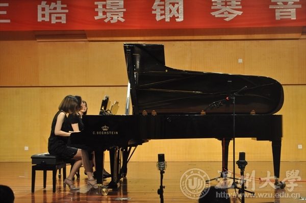 音乐会的下半场也接着开始了,首先由特邀表演嘉宾莫颖和陈泱泱带来的合奏《莫扎特钢琴协奏曲K595第一乐章》,这首曲子运用古典音乐形式原则,对巴洛克三乐章协奏曲进行了发展。温和从容、和谐宁静。最后由莫颖和王皓璟带来的莫什科夫斯基四手连弹《西班牙舞曲Op.12》。该曲子分为五大种类,分别是C大、g小调、A大调、降B大调和D大调,第一首充满着强烈的西班牙民间色彩,中部分的旋律非常优美。第二首,乐曲是用歌谣风旋律与舞蹈风的节奏所组合而成,旋律部分非常突出。第三首。这是一首结构清晰,充满明朗快活情绪的舞曲。第五首,经常被称为“波莱罗舞曲”。