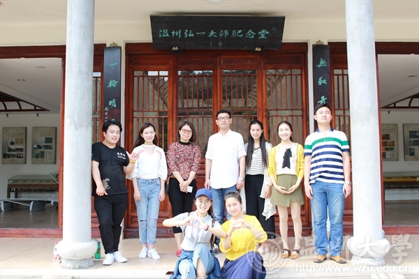 烈日炎炎,但同学们热情依旧高涨。在温州弘一法师纪念堂内,首先,赵玉卿院长向大家简单介绍了李叔同(弘一法师)的生平,包括他的游学背景和学堂乐歌的创作背景。李叔同(弘一法师)虽为富家子弟,但是并没有游手好闲,他坚持刻苦学习,琴棋书画样样精通。他超脱世俗纷扰,潜心治学,最终有所成就。他对学习的热衷和超凡的毅力是我们学习的榜样。之后,同学们参观馆内展示的文物,并就自己对李叔同的认识提出疑问,赵老师耐心解答了同学们的疑惑。
