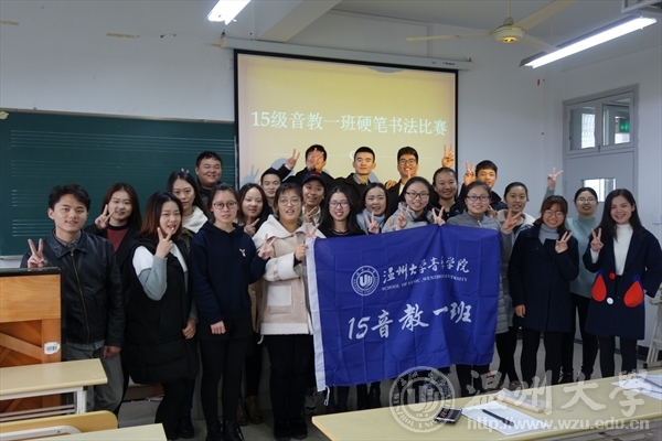 2015级音教1班全体同学在北外语楼408教室开展了别开生面的硬笔书法比赛。