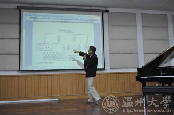 首先,陈惠庆教授问了同学们一个问题:为什么钢琴这个乐器被命名为钢琴?通过教授的解释,让同学们知道了原来钢琴里有一个很大的钢板,而且该钢板是由生铁做成,钢琴就是用它来发音的。接着,教授就向同学们介绍了钢琴的分类以及钢琴的基本结构。钢琴分为三角钢琴(又叫平台钢琴或卧式钢琴)和立式钢琴(又叫竖式钢琴),钢琴是由共鸣盘系统、键盘机械(键盘和击弦机两部分)、踏板机构和外壳构成。然后,教授便介绍了钢琴选择的方法。选择钢琴时,要注意钢琴的质量,要求钢琴的音色基本一致,高音区的音色要明亮清晰以及要有颗粒的质感,要有一定的音量,音量的大小要与琴的规格相适应,无沙音和音要准。最后,教授向同学们介绍了一些钢琴的使用,保养和维修的小知识。钢琴不能放置在有严重的腐蚀气体处、不能放在靠近水汀或热源处、不能放置在空调机底下或冷气直射的地方、不能紧贴墙壁以及不要放在阳光直射处等。使用钢琴时,不要用脚使劲踩,不要用手使劲的敲击琴键。黄梅时节过后,最好将钢琴琴盖打开,透透气,在钢琴内放一些樟脑丸,防霉防蛀。新买的钢琴最好半年调一次音,以后便可以一年或两年调一次音,这样一来钢琴的使用寿命就会更长了。在讲座快要结束的时候,教授还不忘告诉同学们一些钢琴维修的小技巧,让同学们在钢琴出一点小问题的时候可以自己动手解决。