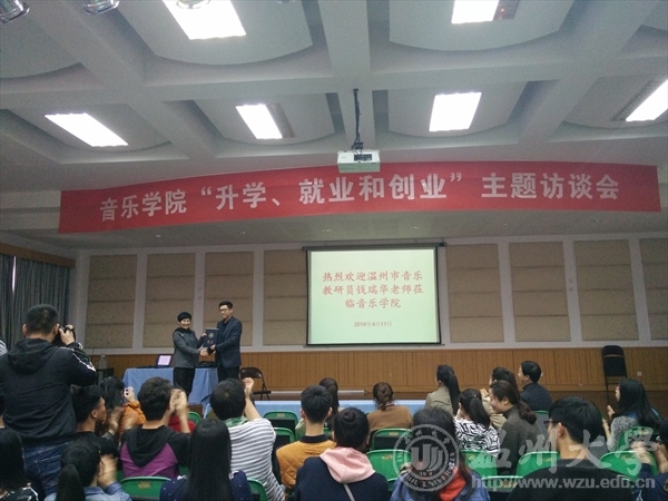 音乐教研员钱瑞华是温州市音乐教育界颇具影响力的一位优秀教师。首先,钱瑞华老师就现在中小学音乐教学中的不足,如教师普遍存在音乐专业术语匮乏、教学缺乏符号性、教育只流于表面而没有明确目的等现象,同时表示自己在工作学习中尤其注重这些方面;其次,钱老师主要从音乐教育理论的学习与铺垫、音乐体验的途径与方式、音乐课例的观察与分析三个层面,逐一进行解读,在讲到教学中使用体态律动、情境再现等方法时,钱老师邀请台下所有学生参与互动,在学生们的积极配合下场面气氛活跃、有趣,使大家更深刻地体会到音乐教学的乐趣和内涵;讲座临近结束时,钱老师总结了此次讲座的主要内容和意义,并表示音乐教育的最终高度为情感,并以此达到音乐教育的目的;最后,时时彩