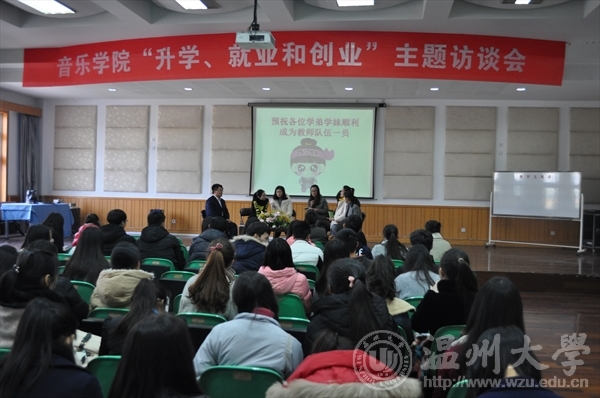 音乐楼201隆重举办。本次“升学、就业和创业”主题访谈会邀请到了01级校友温州市天之音艺校校长陈红红、温州市岠江小学教师黄怡甜、时时彩