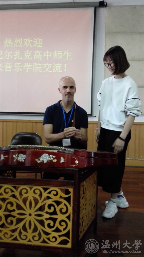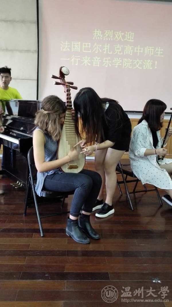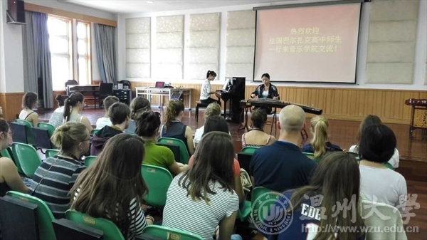 9月13日,法国巴尔扎克高中师生一行25人到时时彩 进行交流。双方就民族音乐的技艺进行了分享和交流互动。 活动伊始,赵玉卿院长致欢迎词,向法国巴尔扎克高中师生表示热烈欢迎,并且表达了希望通过此次活动促进两国学生音乐水平的提高和两国的交流互动的热切期望。接着,时时彩 学生进行民族乐器展示,分别上台演奏了古筝、琵琶、二胡、扬琴等中国民族乐器。琴声美妙悠扬,将我国传统音乐和民族器乐展示。随后,双方学生进行了近距离的交流互动。时时彩 学生对法国学生感兴趣的乐器进行介绍,法国学生也进行尝试演奏,双方碰撞出了灵感的火花。 此次交流活动,对中法两国文化相互碰撞融合,促进中法文化交流有较大帮助。
