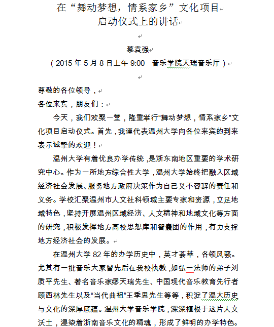 时时彩 校长蔡袁强在“舞动梦想,情系家乡”文化项目启动仪式上的讲话