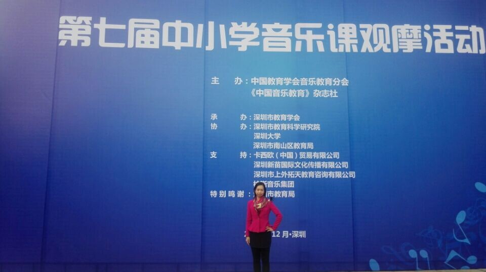 理论教研室李葳老师赴深圳观摩了全国第七届中小学优质课比赛小学组的比赛。此次比赛是继2011 年重庆第六届全国中小学音乐优质课比赛后的又一次中小学音乐老师的盛会,也是2011版中义务教育音乐课程标准颁布以来的首届中小学优质课比赛。小学组共有21节课,分别从全国各省市72节课中脱颖而出进行现场展示。来自全国各地7000余中小学音乐教师和音乐工作者观摩了此次盛会,是历届参与人数最多的盛会。