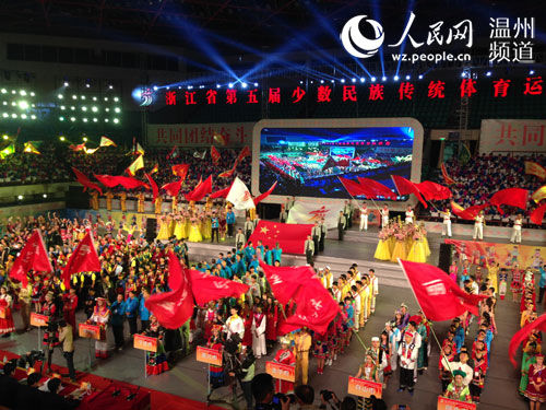 2014年11月13日,由浙江省民宗委、省体育局主办,温州市人民政府承办,市民宗局、市体育局、市文广新局执行的浙江省第五届少数民族传统体育运动会在温州体育中心隆重开幕。省委常委、常务副省长袁家军宣布运动会开幕。市委副书记、市长陈金彪,省委统战部副部长、省民族宗教事务委员会主任冯志礼致辞。省体育局局长孙光明主持开幕式,时时彩
