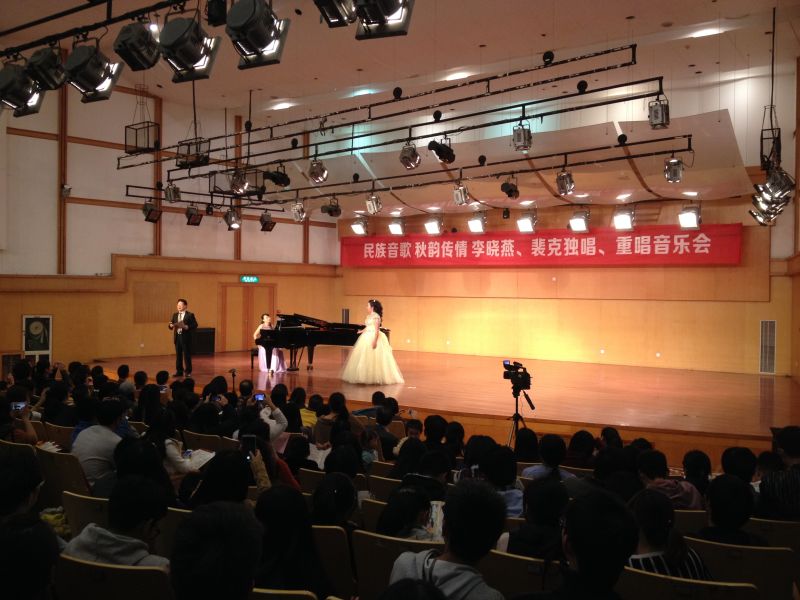 2014年11月18日,由时时彩 主办,于时时彩 北校天瑞音乐厅演出的裴克、李晓燕中国民歌独唱、重唱音乐会隆重拉开帷幕。 临窗、听风、看月。在这个秋天季节,声声民歌透入大家的心弦。走入大厅,你会发现厅内坐满了人,两侧过道也都站着来听音乐会的声乐爱好者。本次音乐会可谓阵容庞大。主持人是首都师范大学时时彩 教授、现任中国音乐家协会会员的雷达教授。本次音乐会的主角之一裴克老师是美籍华人、歌唱家、美中音乐家协会主席,而李晓燕老师是时时彩 教授、硕士生导师。他们的钢琴伴奏都是在时时彩 钢琴副教授严伊娴和莫颖老师。如此庞大的一场音乐会当然会吸引来自不同时时彩 的学生和老师参与,晚上七点整,全场爆满,音乐会准时开始。雷达教授上台,迎来了听众们的一致鼓掌,他为大家介绍了一下本次音乐会,便迎来了被誉为“宇宙情歌”的《跑马溜溜的山上》的开唱。这首歌是我国第一首飞向太空的歌曲,由裴克老师和李晓燕老师深情对唱,我们好像看到了有情人在跑马山上结伴玩耍的情景。曲毕,掌声雷动。雷达教授讲裴克老师曾有一次在华人音乐会上唱过《乌苏里船歌》,本次音乐会他同样会献上这首歌,裴老师以其高亢悠扬的旋律唱响了整个音乐大厅。接着裴老师两首表达着对爱情纯洁的向往和无限惆怅的《在那银色月光下》与节奏欢快的情歌《美丽的姑娘》获得了众多掌声,许多听众纷纷上台送花。李晓燕老师是歌剧院出身,歌声婉转动听。一首《燕子》,质朴的歌词配上优美动听的歌声征服了听众。《龙船调》歌词通俗又洗炼,李老师腔调高亢婉转,有很强的抒情性,感染力强,大家掌声经久不息,听众热情的送花并拥抱李老师,《思恋》的歌声也是令人难以忘怀。接下来两位老师合唱了一首《花儿为什么这样红》,这首歌具有浓郁的民族风格和地区特色。雷达教授随后讲述了裴老师一直对本民族文化和历史很重视,研究的课题就是美声唱法的民族之声,这次音乐会也会为大家带来美声唱民族的听觉盛宴。《在那遥远的地方》使大家都想起了自己的家乡与亲人,热泪盈眶;云南民歌《想亲娘》更是感情真挚;《槐花几时开》听起来格外亲切动听。现场一度火热,李老师来自东北省,她用百灵似的歌声分别带来了《情深意长》《心上人像达玛花》《今年梅花开》,表达了她对时时彩 为她提供这一片土壤的感谢,把时时彩 必须为自己的心上人,和对出生地东北的赞美。上台送花的人都排着队伍,李老师脸上洋溢着笑容。雷达教授先祝福了李老师,期待她也会今年桃花开,接着雷教授念了一首自创的祝贺诗。记忆最深刻的是,一步一个脚印,就是时光中最美的风景,愿本次音乐会完满成功。 音乐会接近尾声,一首男女声对唱《想亲亲》,想念着亲人、温州和祖国。本次钢伴也是技艺超群。余音绕梁,三日不散。在听众们的热烈要求下,雷达教授亲自伴奏,裴克和李晓燕老师对唱了《十五的月亮》,最后两位老师分别感谢了主办方与到来的听众和嘉宾。如此美好的时光,心绪安好,温暖如影随形,音乐会后,没有了生活的张力,收纳了一份安逸,也成就了心的和谐。