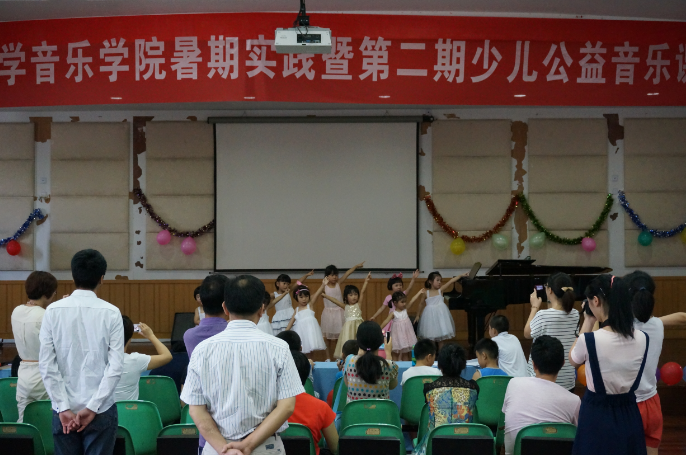 展演结束后,实践队成员们给小演员们分发了礼品。最后小朋友们与老师们以及校领导合影留恋,大家的欢声笑语响彻了音乐报告厅,本次暑期社会实践也到此圆满落幕。