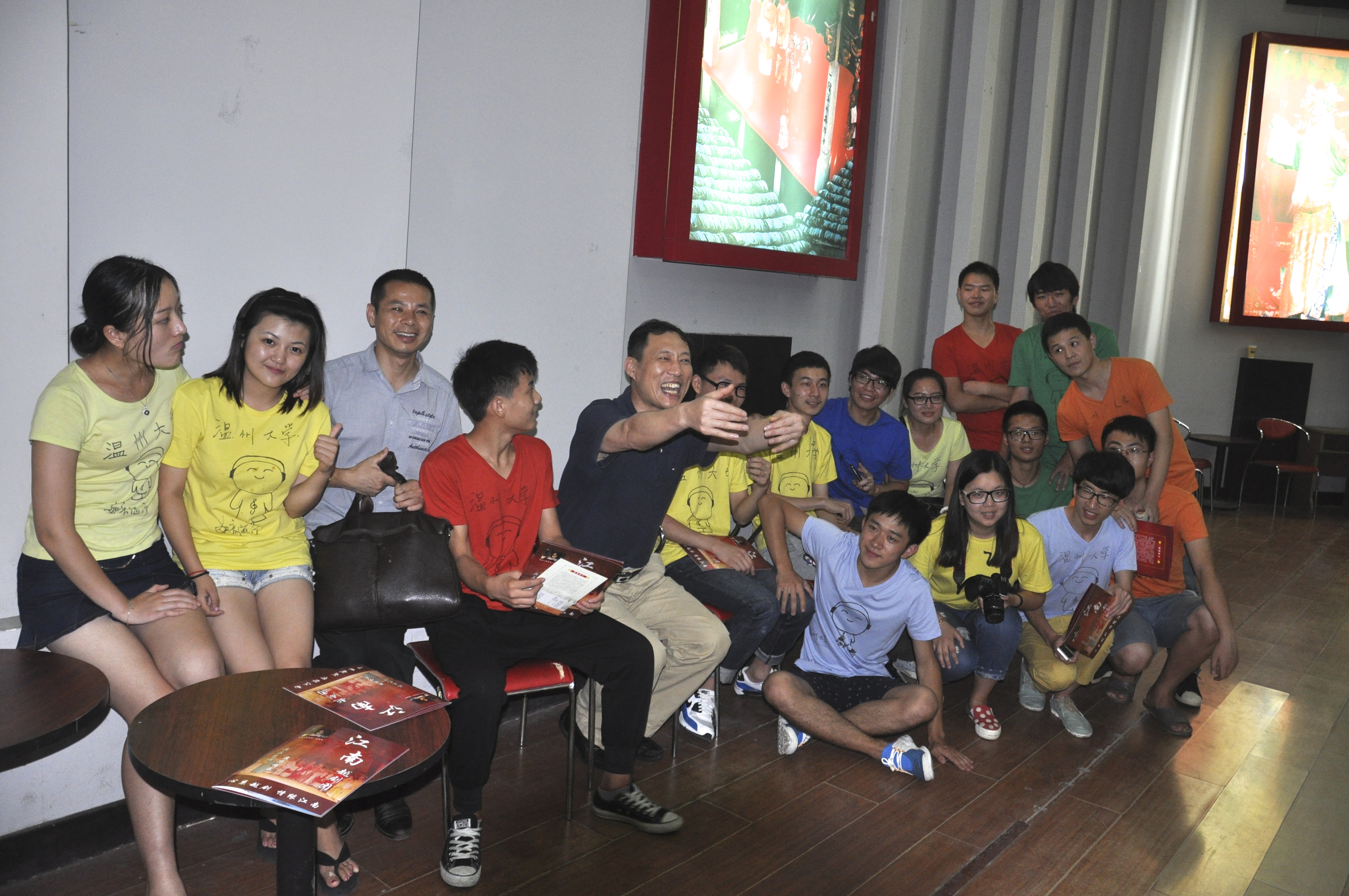 图为牟书记与实践队师生亲切交流越剧学习心得