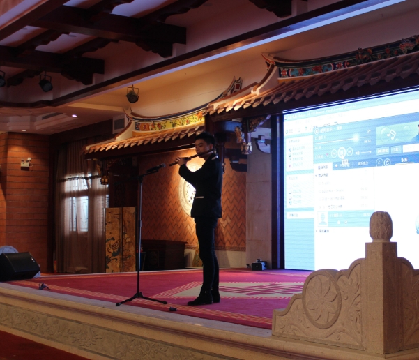 陈立煊同学用笛子吹奏了一曲《三五七》,用娴熟准确的技法和饱满的热情赢得了台下阵阵掌声。
