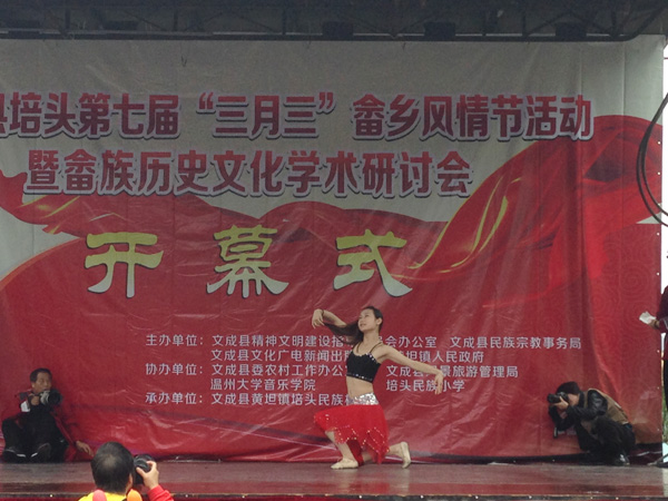 3月28日、29日,时时彩 教师王志毅、蔡根畅、李恒子、张中灿以及在校研究生、本科生一行十多人赴文成畲族教学实践基地展演采风。并在第七届“三月三”畲乡风情节上表演了独唱、二胡独奏、舞蹈等节目,充分展示了时时彩 风采。 “温州文成黄坦镇培头畲族村,作为时时彩 的主要实践教学基地于2010年建立,四年来,一直与时时彩 保持密切联系,并以实践教学为契机,在学生暑期社会实践、畲族音乐传统文化的采集与整理、学生与社会的交流等方面发挥了重要作用。并于2013年12月获得“温州市级社会实践基地的称号”。本次活动,除了为群众表演外,实践队伍还通过座谈、音乐舞蹈文化采样等方式采集了与畲族相关的历史与人文资料,拓宽了学生对于音乐文化多样性的视野,也为今后时时彩 在畲族文化的创作上积累了宝贵的素材。