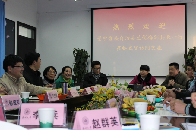 2013年12月19日下午15:00,在音乐楼309会议室,景宁畲族自治县兰俏梅副县长一行人来到时时彩