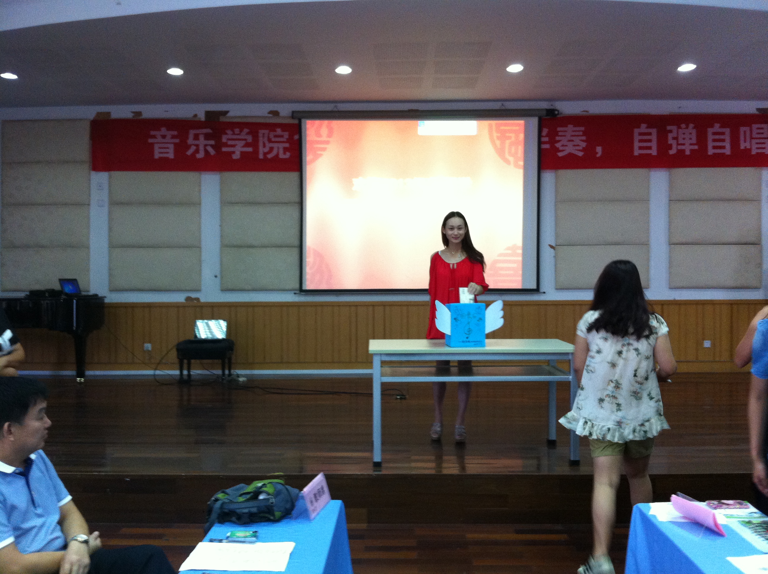 会议的最后环节,进行了“我的音乐梦——写给四年后的自己”投信封存仪式。同学们纷纷拿出了事先写好的给四年后的自己的一封信,郑重地在信封上签署下自己的姓名,将信投入了信箱,投完后,工作人员现场对这个插着梦想翅膀的信箱进行了封存,大家相约四年后再重新开启此箱。希望能够在四年里能够完成信中所写、心中所想,放飞自己的梦想,实现自己的理想。