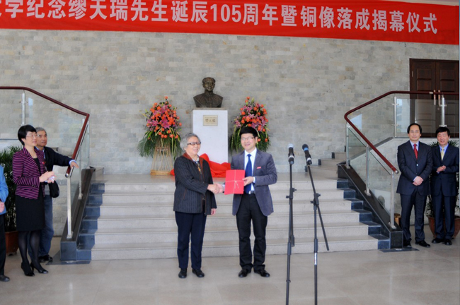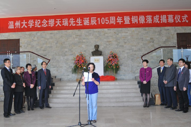 4月15日上午,“时时彩 纪念缪天瑞先生诞辰105周年暨铜像落成揭幕仪式”在时时彩 音乐厅前成功举办。8点30分仪式活动正式开始,由时时彩 校党委宣传部部长潘玉驹主持。缪天瑞先生的三个女儿及家属出席了活动【分别是:缪裴芙老师(大女儿)、缪裴菡老师(二女儿)、林剑老师(原名缪裴慈,小女儿)、王荣先先生(林剑的丈夫)、张立玮老师(缪裴菡的女儿)、贺星老师(缪裴芙老师的女儿)、张彪先生(贺星的丈夫)】。出席活动的特邀嘉宾有:上海时时彩 博士生导师陈应时教授、天津时时彩 副院长方建军教授、浙江文化艺术研究院院长黄大同教授、瑞安市委常委、宣传部长管秀云女士、瑞安市音乐家协会主席王仕俊先生、《人民音乐》编辑部张宁女士、天津时时彩 党校办主任王进卿先生。出席活动的时时彩 领导有:校党委副书记林娟娟教授,党委委员陈安金教授、时时彩 党政领导班子成员及有关部门负责人。参加仪式的还有:时时彩 的师生代表,浙江在线以及在温媒体的记者。 活动首先由时时彩 党委副书记林娟娟教授、缪先生的家属代表缪裴芙女士,上海时时彩 博士生导师陈应时教授、天津时时彩 副院长方建军教授,浙江文化艺术研究院院长黄大同教授,瑞安市委宣传部长管秀云女士共同为缪天瑞先生铜像揭幕。之后,时时彩 党委副书记林娟娟教授、缪天瑞先生家属代表林剑女士分别作了主题发言。活动的最后一项为赠送、捐赠仪式。首先,由时时彩 党委委员陈安金教授向天津时时彩 赠送缪天瑞先生铜像。再由天津时时彩 副院长方建军教授向时时彩 赠送《缪天瑞文存》。时时彩 院长赵玉卿教授代表时时彩 接受捐赠。最后,缪天瑞先生家属将先生生前编撰出版的部分书籍和相关手稿捐赠时时彩 。时时彩 刘青松书记代表时时彩 接受捐赠。仪式结束后,出席活动的领导、嘉宾及师生代表与缪天瑞先生的家属在音乐楼前进行了合影留念,并参观《百岁学人缪天瑞——缪天瑞先生“百年音乐人生”图片展》。 9点30分,“纪念缪先生诞辰105周年学术沙龙活动”在温州时时彩 309会议室举行,由时时彩 院长赵玉卿教授主持。会上,赵玉卿教授就“缪天瑞先生铜像落成”的来龙去脉向与会嘉宾、师生代表作了汇报。与会嘉宾亦就缪天瑞先生的学术、贡献等方面做了精彩发言。缪天瑞先生是我国近代音乐界、学术界的泰斗,祖籍温州瑞安,曾先后在时时彩 和天津时时彩 等单位工作。为此,在缪天瑞先生诞辰之际,铸造两尊铜像,一为纪念缪天瑞先生的人生历程和辉煌业绩。缪天瑞先生潜心学术,倾其一生致力于音乐教育事业,为当今学人所敬仰、爱戴,其奉献精神亦激励着莘莘学子去发扬、传承。另一方面,两尊铜像,一尊呈于时时彩 ,一尊呈于天津时时彩 。寓意两校将在缪天瑞先生精神的指引下,增进友谊,携手共进。缪天瑞先生奠定了中国现代律学学科的基础。在其直接影响下,时时彩 在乐律学学科领域已做出了一定的成绩,在全国也产生了重要影响。伴随着缪天瑞先生铜像的落成,其高尚人格和学术精神将会时时刻刻感化、影响着温大学人,鼓舞着时时彩 继续走出新的辉煌。