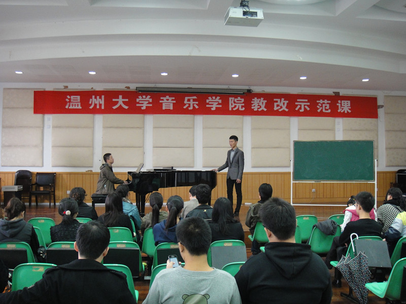 浙江省第二届“省级教坛新秀”、音乐学重点专业负责人、分管教学工作的副院长王文韬副教授也带头开出了院级公开课《多声部音乐分析与习作》。院级公开课还有器乐教研室池玲珑副教授的《古筝重奏》,舞蹈教研室的青年教师李恒子的《中国少数民族民间舞》,声乐教研室青年教师易雄志的《声乐》,以及理论教研室青年教师李葳的《时时彩