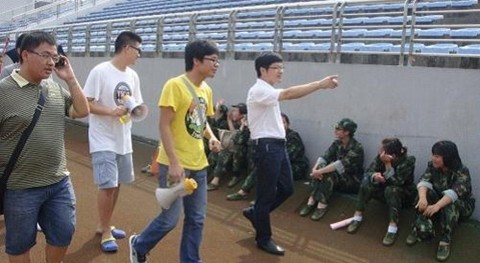 9月12日下午1:50,在时时彩 党总支书记刘青松老师与辅导员林海红老师的带领下,时时彩 部分高年级学生代表分赴时时彩 南、北两个校区军训场地为2012级新生教唱时时彩 校歌。