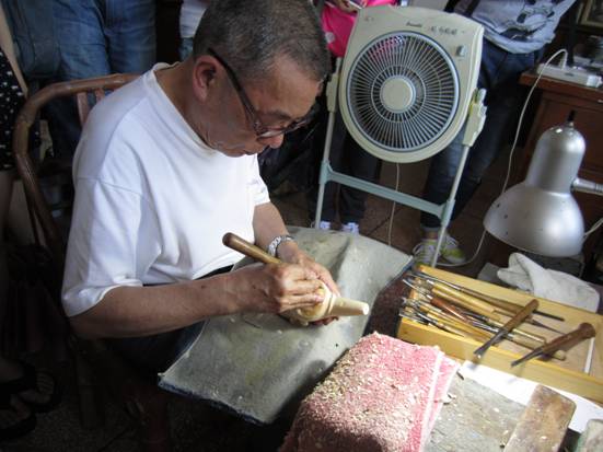 7月1日,温大寻美探索实践团队在泰顺木偶剧团团长王景快老师的带领下,来到全国著名的木偶制作大师季桂芳老先生的家中,探索木偶制作的真实一面。季老先生引领实践队员参观了他的木偶工作室。在工作室里陈列着各种类型的小木偶,如济公,梁祝,彝族娃娃。其中最特别的是一尊雕刻精美的陈十四娘娘。而房间内高墙上悬挂的两张发黄的旧照片1978年老先生与全国工艺美术届代表与当时国家领导人的合影以及橱窗上摆放的各种奖杯和天功奖等荣誉证书,也证实了季老先生的在全国的影响力和巨大成就。季老先生还给大家现场演示了木偶的制作,其精湛的刀工让大家叹为观止。另外,老先生简单向我们介绍了几件作品,讲解了有关木偶的制作流程,讲述了他从事木偶制作的经历。最后,季老先生还兴致勃勃的带大家参观了他曾在温州博物馆展览的几十件大型的戏曲作品,各种面部栩栩如生、服饰精美、制作精良的木偶,是老先生十几年的心血所在。临走时,老先生还送给我们几个小木偶作为纪念。