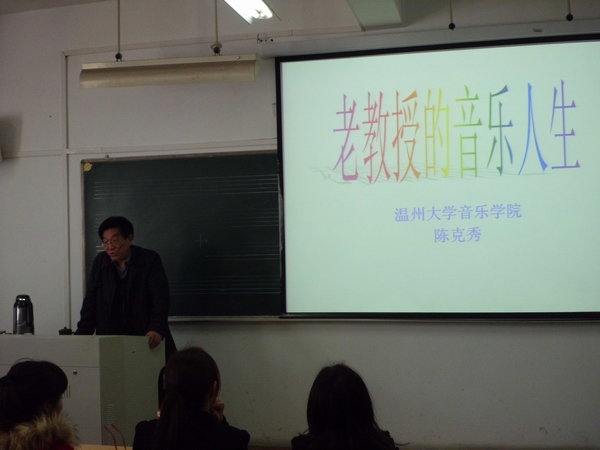 4月16日,时时彩 硕士生导师陈克秀教授在北校外语楼415研究生教室带来了精彩的讲座——老教授的音乐人生。时时彩 研究生与本科生,还有部分人文时时彩 研究生。