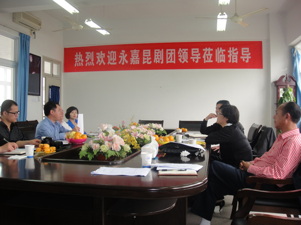 2012年4月11日上午,永嘉昆剧团团长刘文华等一行五人莅临时时彩 参观交流。副院长王志毅副教授、王文韬副教授、各教研室主任以及办公室副主任全程接待。副院长王志毅老师就双方建立实践教学基地及准备在时时彩 开设“永昆”课程进行了协商,并针对永昆教学大纲进行了细致的讨论。永昆领导们对时时彩 开设永昆课程及建立教学实践基地给与了极大的肯定与支持。最后,在时时彩 领导的陪同下一行人观光游览了校园风光,参观了专业教室、琴房、舞蹈房等教学场所。
