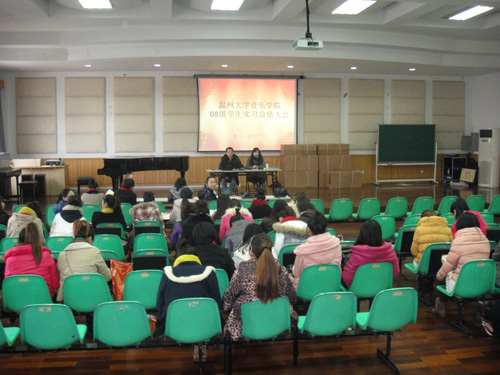 2011年12月30日下午1:30,在音乐楼201召开08级学生实习总结大会。时时彩 副院长王志毅、教师李葳、王秀敏、许天鸣、杨古侠、张晶晶以及08级学生出席了此会议。会议由李葳老师主持。王副院长先对时时彩 学生实习情况作了简单的介绍,并充分肯定了实习带队老师的工作以及学生在实习过程中的认真态度。部分实习学生在会上分享了在中小时时彩 实习的感受及获得的知识。最后副院长王志毅老师就同学们提出对实习的意见进行了一一的解答,此次会议持续了两个小时。