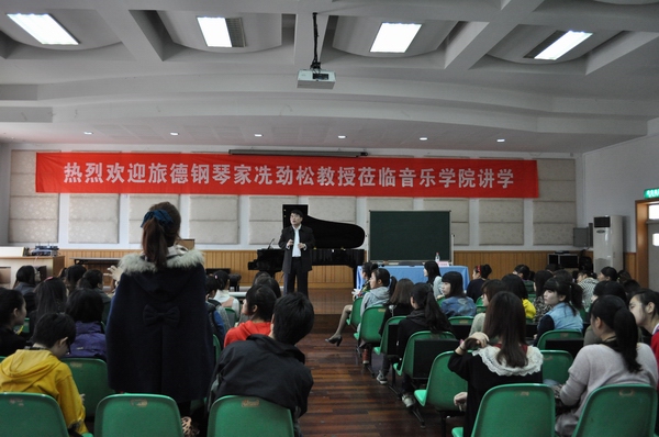 在提问互动环节中,冼教授耐心的为大家做了大量的比喻,引用了多个谱例来阐释所问音乐作品中节奏、乐感等问题,并就某些技术难点设计了独特、有趣的练习方法,让在座的同学们深为触动。冼教授为我们营造的不仅仅是一场激动人心的钢琴讲座氛围,更多的则是为我们今后对钢琴学习的重新理解和方向定位作出了一个好的指引。文/ 吴寒青