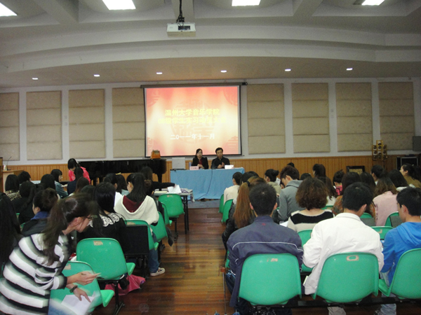 全体08级学生在音乐楼201参加了毕业生实习动员大会,会议由实习带队李葳老师主持,王文韬副院长出席并讲话。