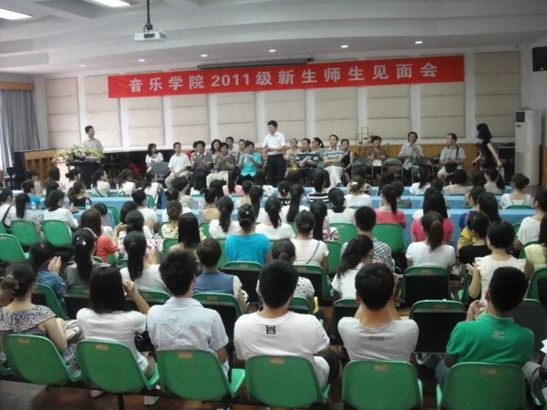2011级师生见面会在音乐楼201隆重举行。2011级全体新生和全院老师出席了见面会。会议由副院长王文韬老师主持。