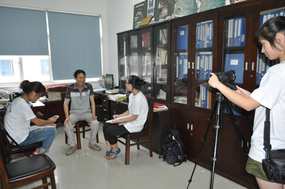 采访队首先对了瑞安市文化馆的非物质文化遗产保护工作者:阮立忠老师做了详细采访。他为同学们讲述了个人以及他的父亲著名温州鼓词艺人阮世池老先生的学习经历。他们对鼓词学习的坚持让同学们非常感动。