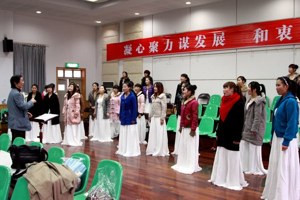 3月5日下午,浙江省教育厅体育卫生与艺术教育处处长王志泉和副处长潘学东一行五人在校党委牟德刚副书记和温州市教育局学生处李珍阳处长的陪同下莅临时时彩 指导工作。院党总支书记刘青松详细汇报了时时彩 女声合唱团的建设情况,领导与专家一起观看了排练和汇报演出,对时时彩 合唱团取得的成绩给予了充分的肯定。