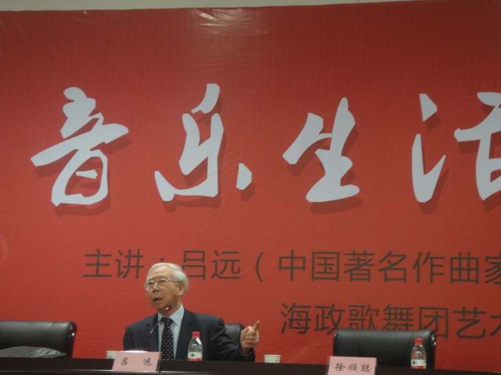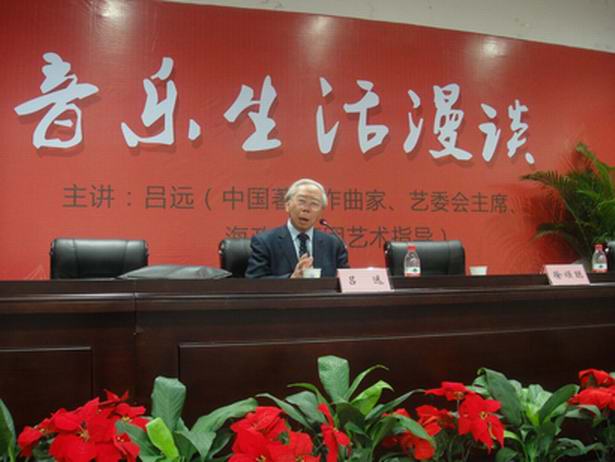 讲座中,吕老用幽默的方式对现代中国音乐的现状进行了描述,发表他对音乐、生活独特的看法。他主张对中国本土的传统音乐进行保护、继承和发扬,而不是盲目地对外国的音乐成果进行全盘照搬;更强调年轻一代在对音乐进行创造时,要注重社会责任感,并用创新的方式,吸引更多的年轻人归回到本土音乐。吕老还对几位同学提出的问题进行了专业而又深刻的解答。
