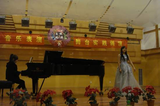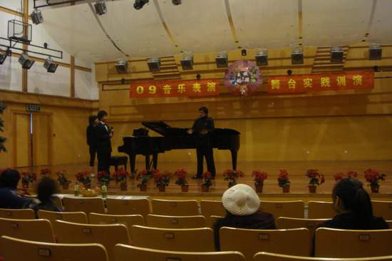 同学们准备得很充分、表演得也很投入。上台紧张,走路随便,坐姿站姿等一系列问题在两位老师耐心细致的指导下一一得到了纠正。通过两个晚上的舞台实践训演,同学们纷纷表示受益匪浅。同学们表示不仅积累了策划活动的经验,更重要的是有了一次舞台表演的经验,并在专业方面得到了有针对性的指点,而且从中感受到了与音乐对话的快乐。