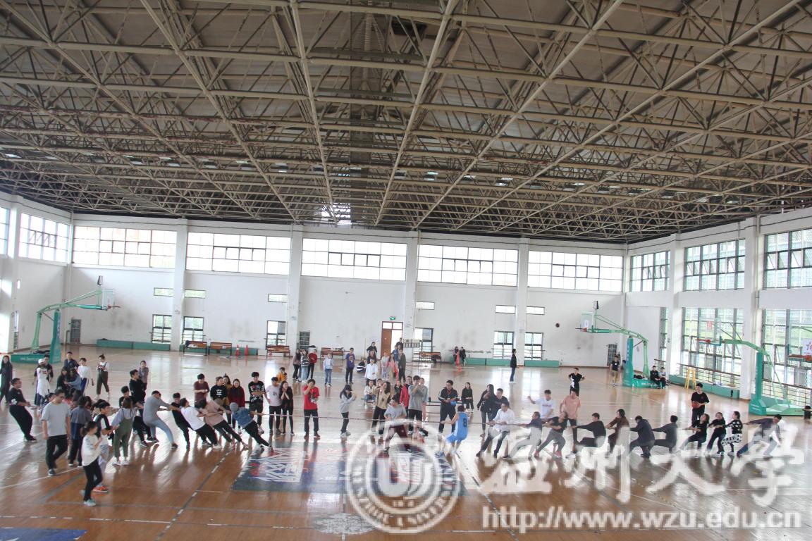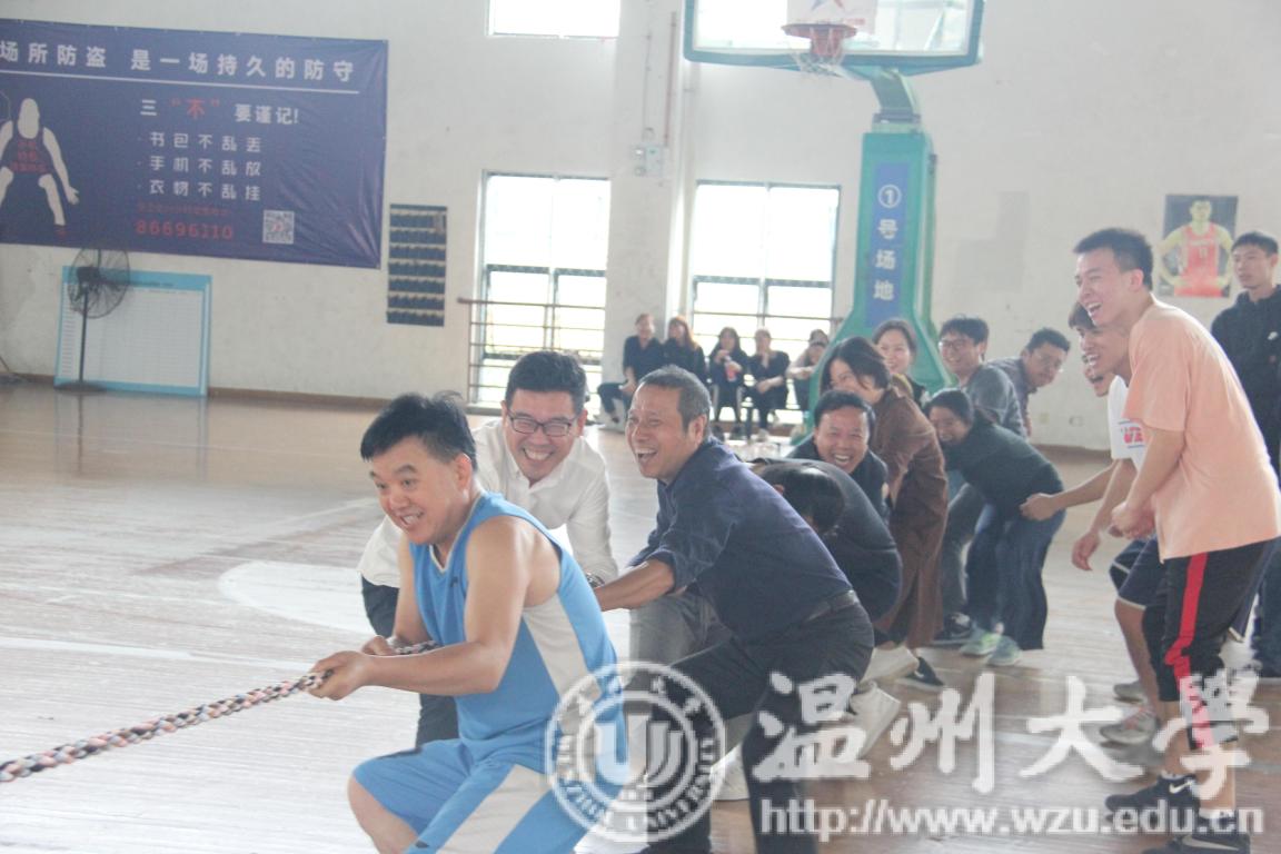 运动会共有四项活动,分别是:师生三人四4*50米接力班级PK赛、师生集体跳绳Pk赛、螃蟹背西瓜、师生拔河比赛。首先,三人四足打响了紧张既激烈的赛场第一枪,各项准备活动在师生的憧憬中热烈展开,各队学生选手与老师正商量对策,体现默契与团结的时候到了,各队斗志昂扬,势必争先。随后,大家将目光转向三班班长手抡的大绳,跟随着甩动的节奏,三班选手整齐划一的越过大绳,大家激情四射,脸上洋溢着笑容。紧接着,螃蟹背西瓜的比赛也热烈展开,采用接力计时形式进行,要求两名同学背对背手挽手,背部中间的空隙用于搬运气球,并且参赛选手只能够以用背部搬运的方式搬运气球,而不可以用手臂拖着气球前进。比赛在大家斗志昂扬的激情下进行的如火如荼。最后,备受瞩目的拔河比赛开始了,老师们胸有成竹的摆好了姿势,但这群充满朝气的学生们可不甘示弱,早已蓄势待发,学生们用他们整齐有节奏的口号成功赢得了比赛,此时对面的老师们也竖起了大拇指,比赛场上阵阵欢声笑语。