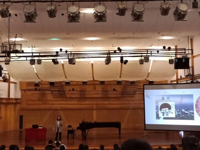 钟芳芳老师给大一新生带来了一场题为《透过音乐发现温州的美》的讲座。她以学姐的口吻,用简朴幽默的语言,讲述了她来温大一年的感触和心理变化;借当代温籍作曲家金承志的两个有趣的合唱作品,一定要找到自己喜欢的事情,并坚持自己的理想。最后在温州话版《喜欢你》的歌声中,钟老师告诫新生要“爱温大、做自己"。