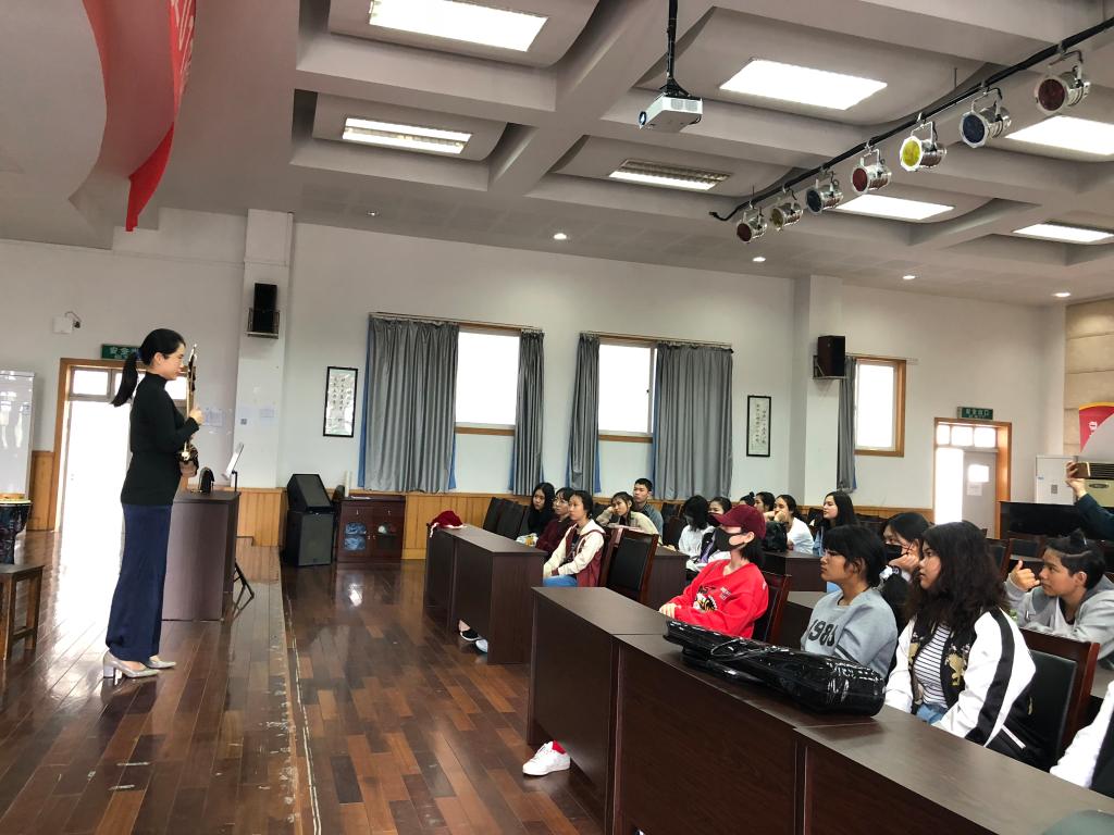 民乐团的同学们在201报告厅为远道而来的17名泰国学生们带来了一场精彩纷呈的民乐赏析会。