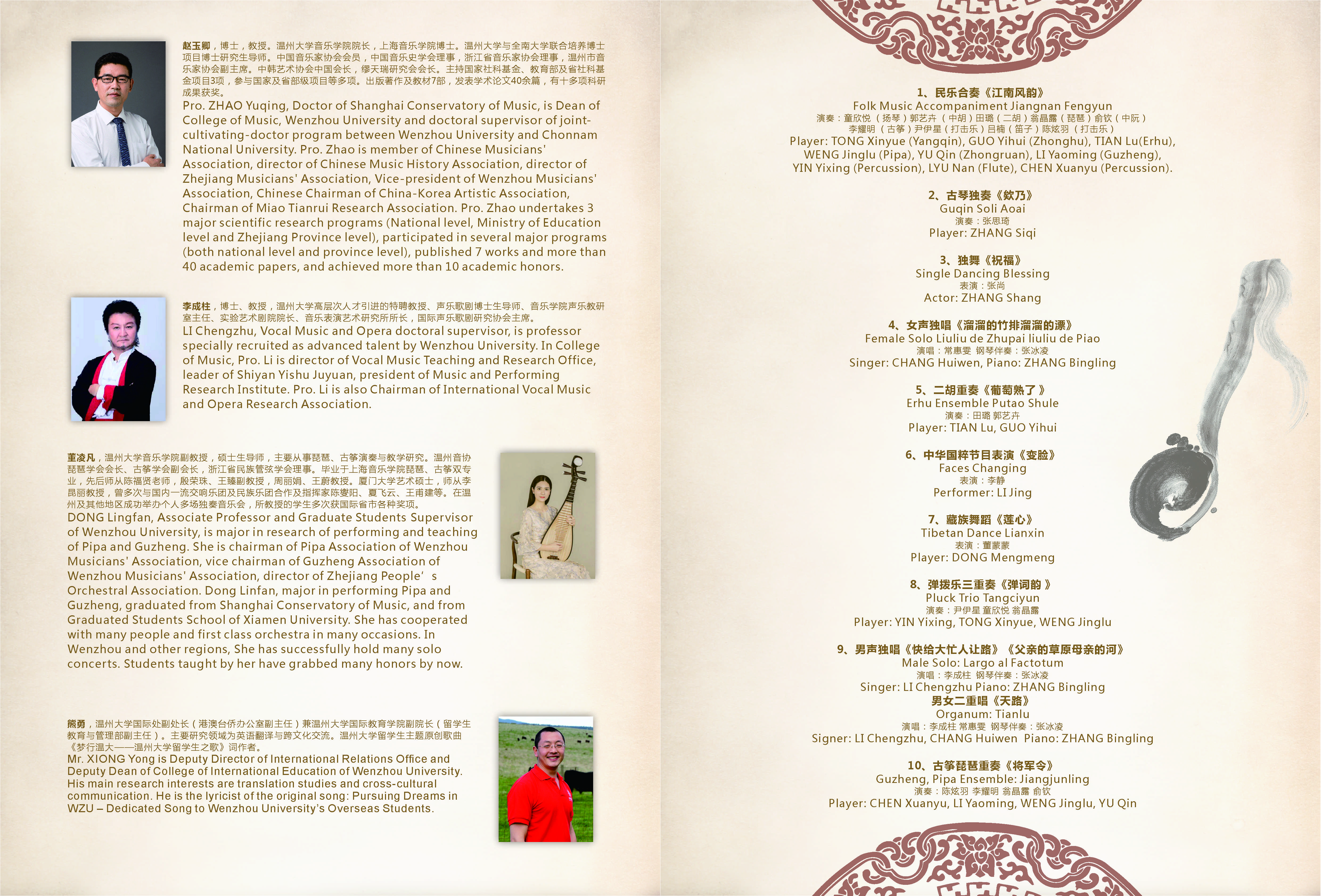 俞钦(中阮)李耀明(古筝)尹伊星(打击乐)吕楠(笛子)陈炫羽(打击乐)