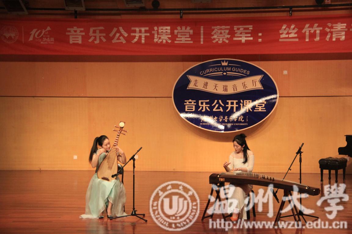 天瑞音乐厅举行了“丝竹轻音·谈古论今”的音乐公开课堂。主讲人为蔡军副教授,表演嘉宾为赵雷教授、林瑶副教授以及高丽君老师。