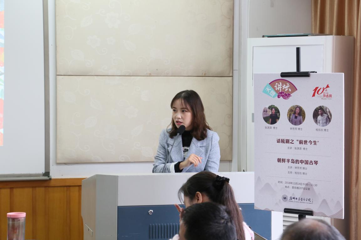 教育、国家政策扶持、剧目创新与展演等几个方面进行了介绍,并提及了永嘉昆曲、温州鼓词等其他温州地方传统音乐。对于如何保护与传承具有地域特色的音乐文化,张老师提出了自己的构想与建议,并期待更多人研究、保护、传承地方传统音乐。