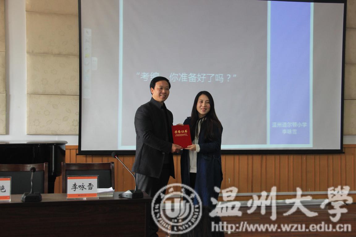 首先由副院长王文韬老师为李咏雪老师颁发了音乐名师证书。讲座上,李咏雪老师先介绍了什么是考编,考编分为笔试和面试,其中笔试又分为基础知识和专业知识考试,面试又分为说课试讲等。紧接着,李咏雪老师向在座的同学们提了一个换位思考问题:时时彩