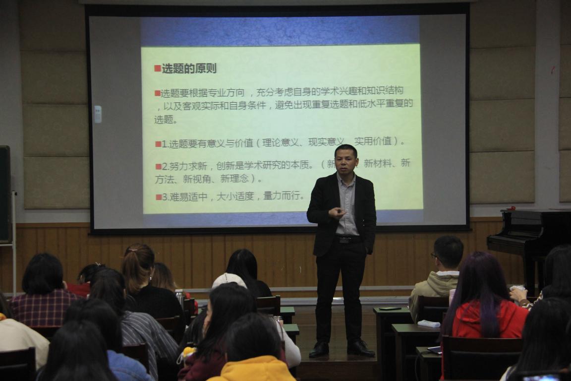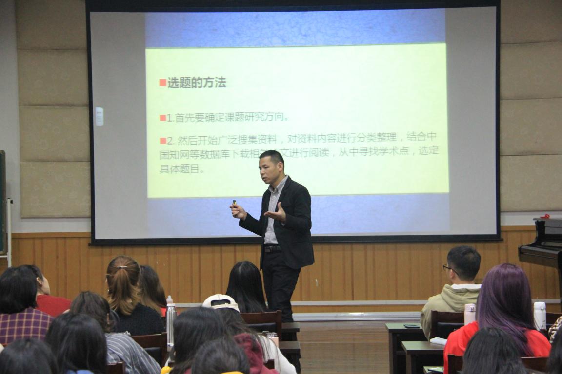 2019年3月29日,在时时彩 201报告厅柏互玖老师举行了“大学生科研课题申报辅导”讲座。 柏互玖老师在讲座中提出选择课题的重要性,比如选择的课题得符合自己的实际情况,在自己的能力范围之内,注重可行和现实性。选择的课题要具有成长性等。柏互玖老师还举出几个科研课题的案例,让同学们进一步了解科研课题该怎么选、该如何做以及怎么样才能做好。然后,同学们提出自己遇到的问题,柏互玖老师非常耐心地一一作了解答。 最后,本次讲座在柏互玖老师的总结下圆满结束。
