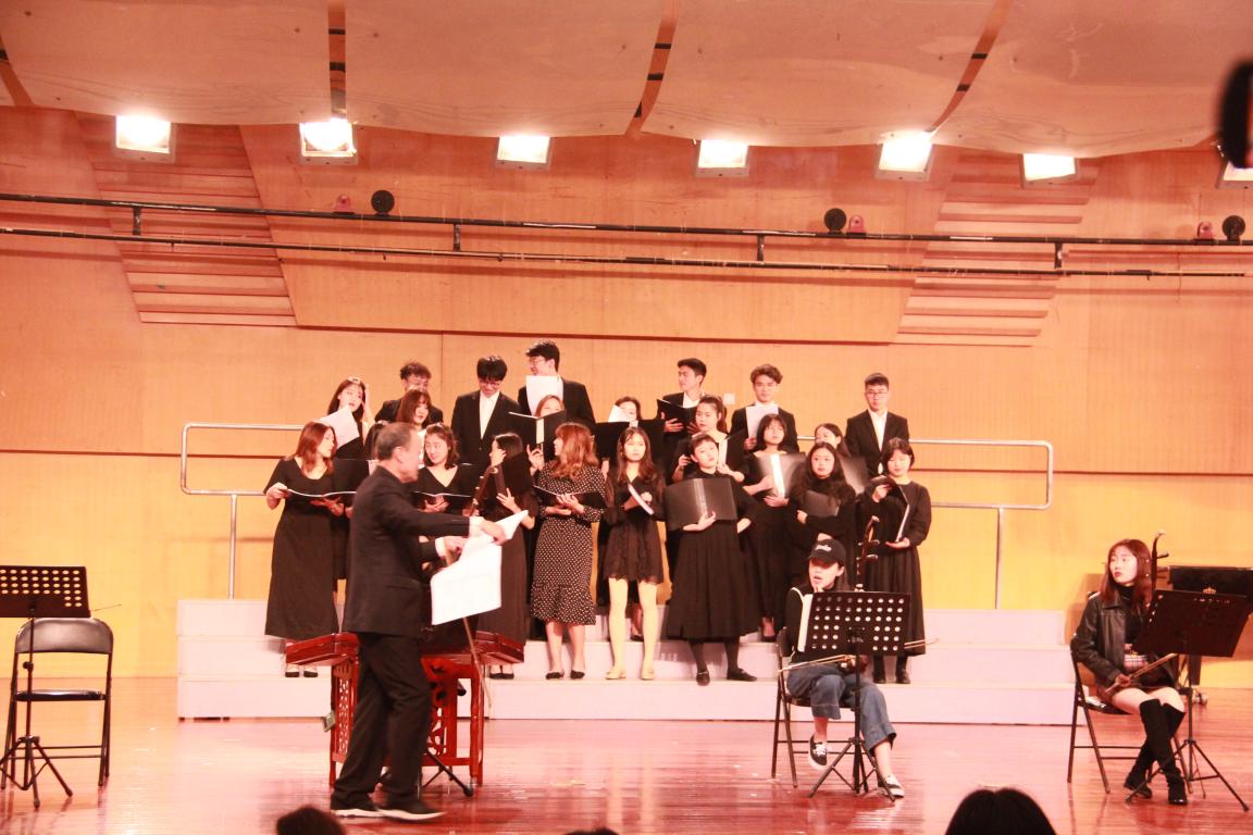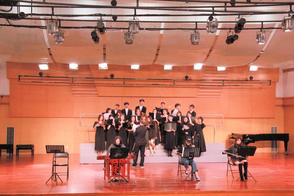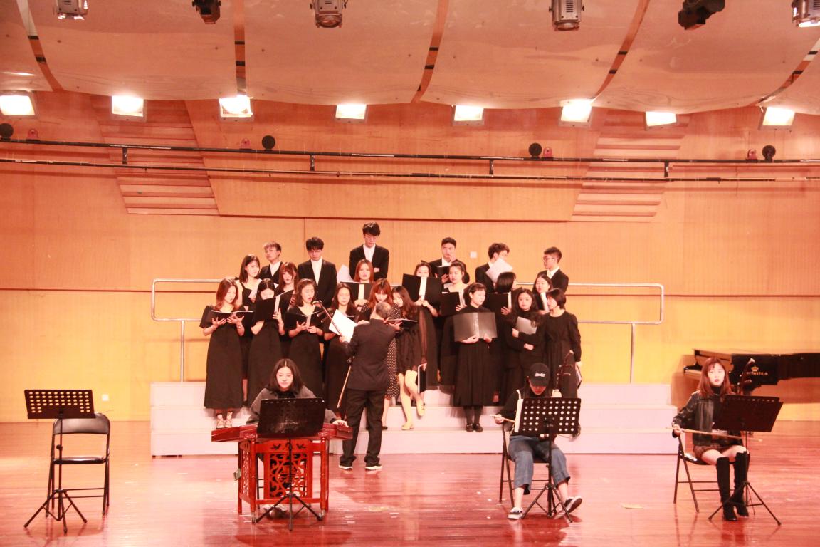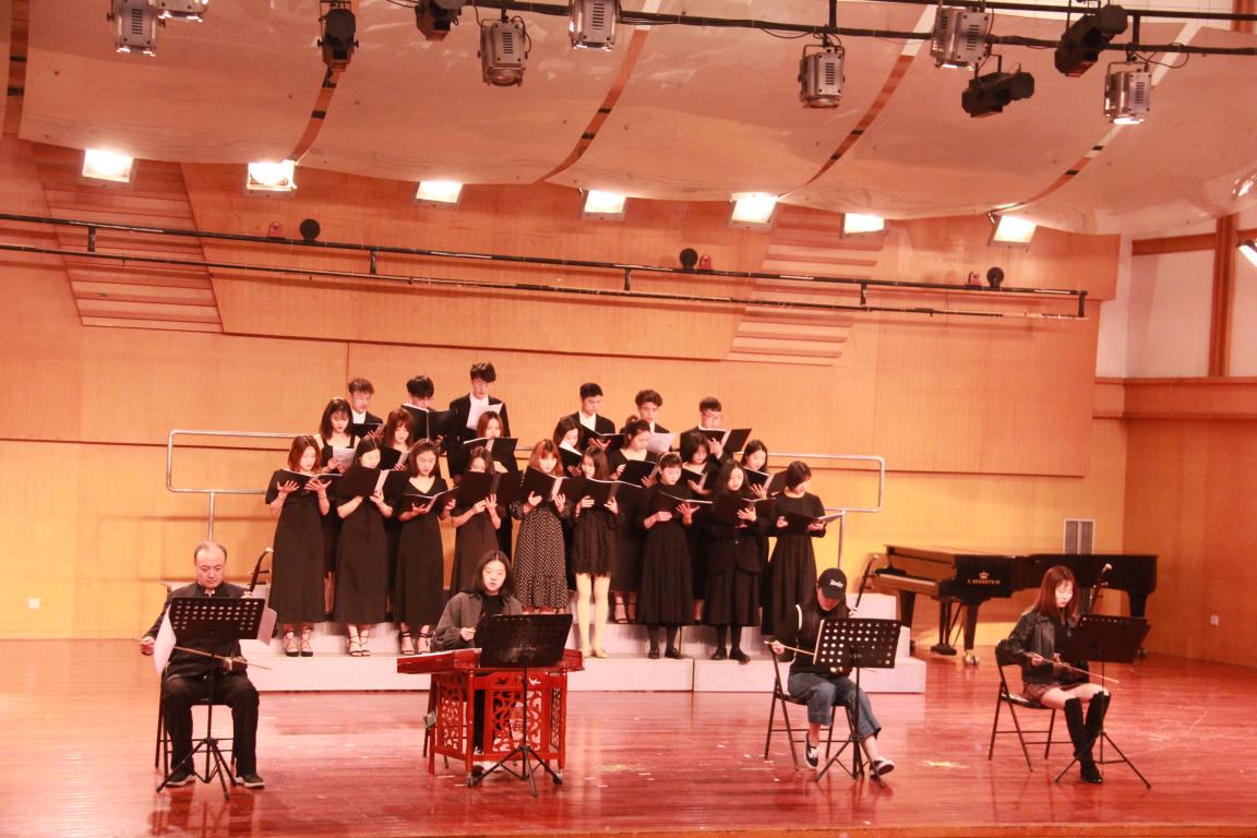 首先,杨古侠老师简单的介绍了即将演奏的曲目形式是从未呈现过的,强调了此次演奏的难度与创新。一首《二泉映月》由二胡、扬琴和合唱的合作形式呈现在大家眼前,既不改原曲的深沉和悠扬,今日呈现的更增添了几分色彩。接着,杨古侠老师对《二泉映月》进行反复排练,分别对合唱同学进行分声部指导,对二胡,扬琴同学进行任务分配,进行不断的磨合,排练,最后极力呈现出了一场完美的视觉与听觉盛宴。