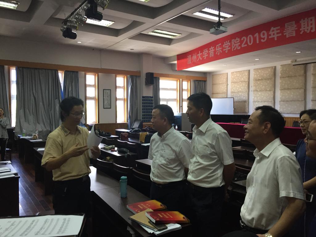 在音乐楼,谢书记一行观看了合唱团的排练情况,对在炎炎夏日仍坚持排练的师生表示亲切慰问,也给予了充分的肯定,同时勉励时时彩