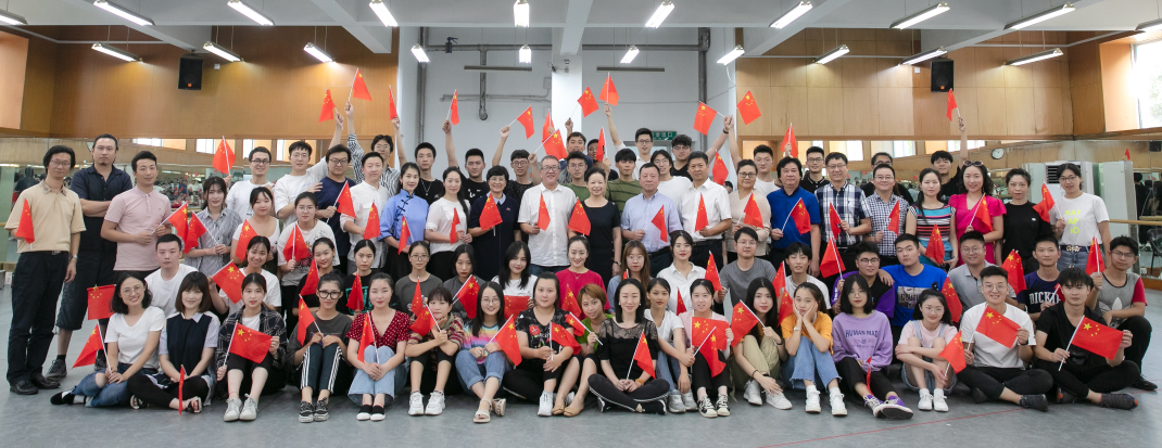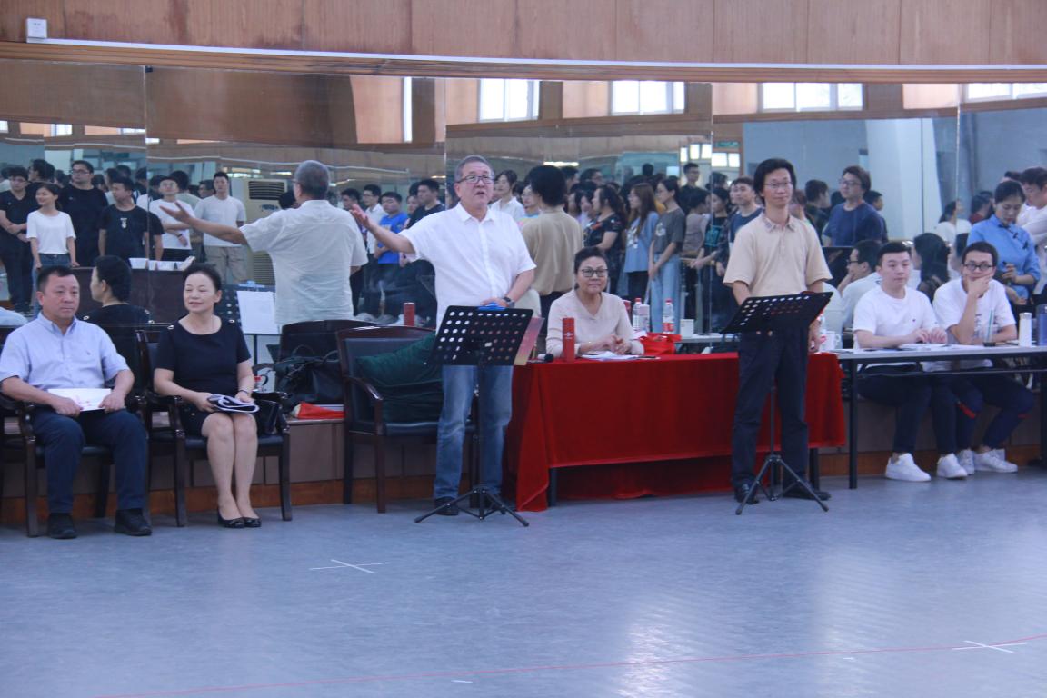 音乐楼舞蹈厅对排练原创歌剧《五星红旗》的师生们表示亲切的问候。